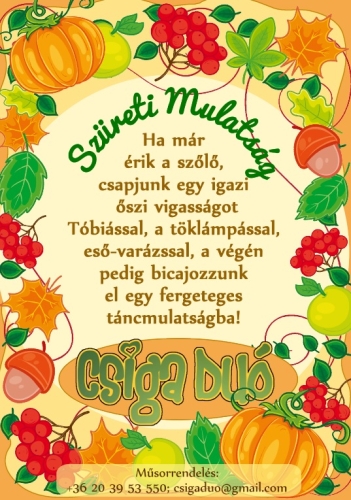 Egy igazi, vidám, táncos Szüreti Mulatságba repíti el a gyerekeket a Csiga Duó.